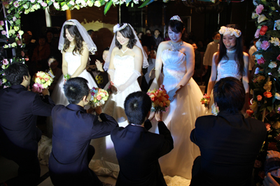 婚禮當(dāng)天,四公司工會(huì)代表該公司全體員工為新人送上祝福,何陵驥為四對(duì)新人證婚,宣布四對(duì)新人結(jié)為恩愛(ài)夫妻,譚興山恭祝四對(duì)新人永結(jié)同心、鐘愛(ài)一生、美滿幸福!新人在親戚朋友和同事們的共同見(jiàn)證下,大聲齊呼“我們結(jié)婚啦!”,激動(dòng)的心情難于言表,相擁喜極而泣,感謝大家給了他們一個(gè)難忘的婚禮。