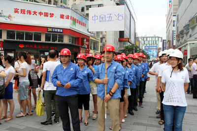 7月2日,在中國五冶集團承建并正式通行后的成都市紅星路廣場上,萬人攢動,鑼鼓喧天、熱鬧非凡,這里正在舉行一場由成都市錦江區(qū)主辦的“實現(xiàn)偉大中國夢,建設(shè)美麗繁榮和諧四川”大型簽名活動。曾榮幸參與了紅星路街區(qū)綜合整治項目工程蜀都大道至東大街路段建設(shè)的中國五冶集團一公司項目團隊和機關(guān)各部門代表40余人組隊參加了活動。